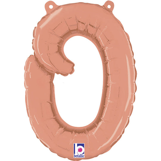 14" Air Filled Only Script Letter "O" Rose Gold Foil Balloon