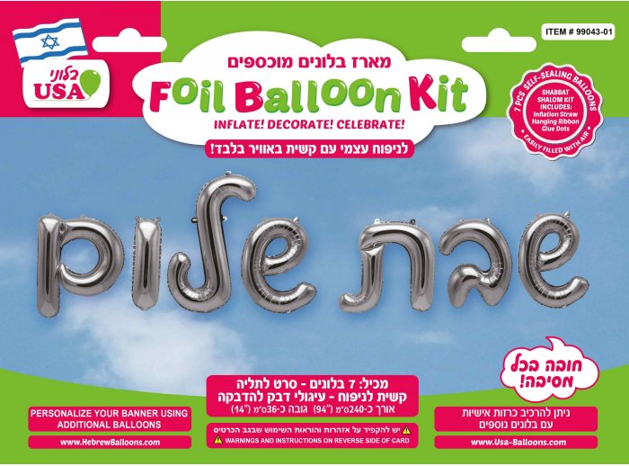 16" Airfill Only Shabbat Shalom Hebrew Silver Kit Foil Balloon