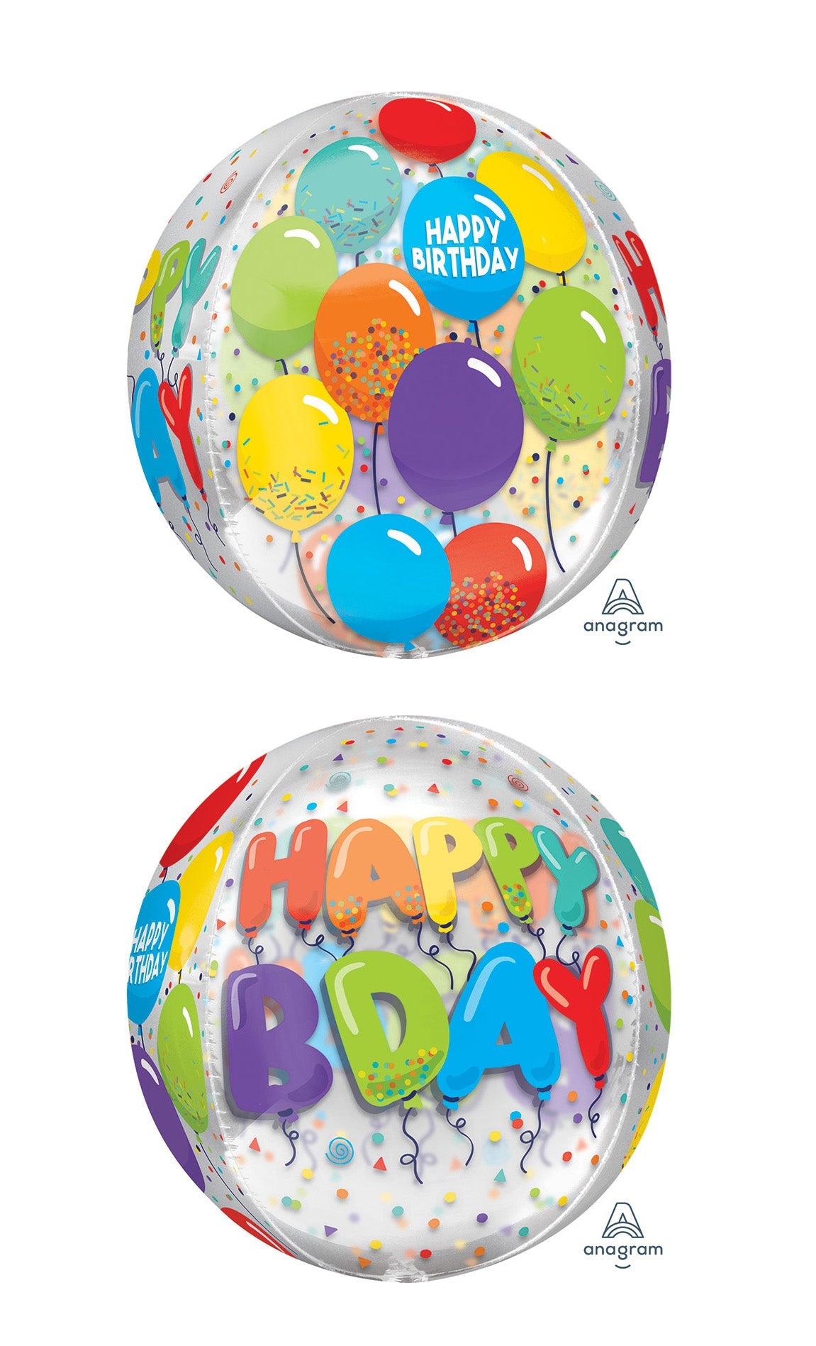 16" Orbz Clear Birthday Celebration Foil Balloon