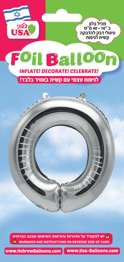 16" Silver Letter Samech Hebrew Air Filled Foil Balloon