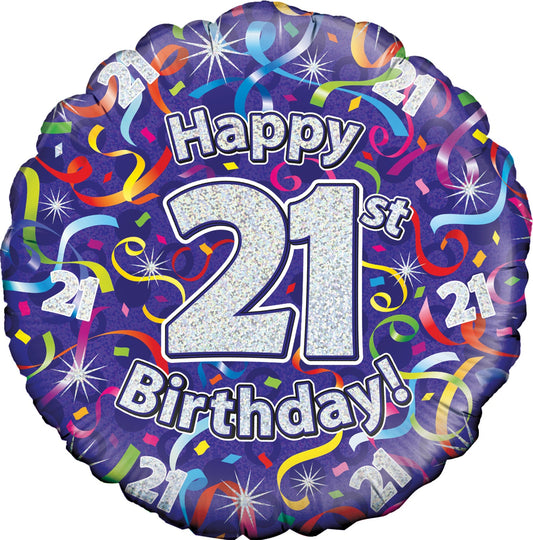 18" 21st Birthday Streamers Holographic Oaktree Foil Balloon