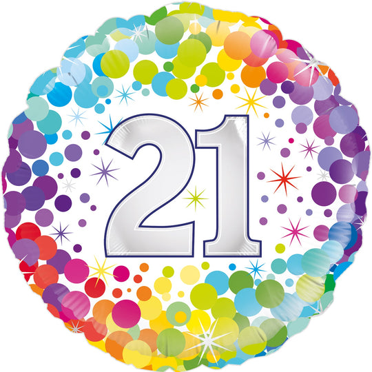 18" 21st Colourful Confetti Birthday Oaktree Foil Balloon