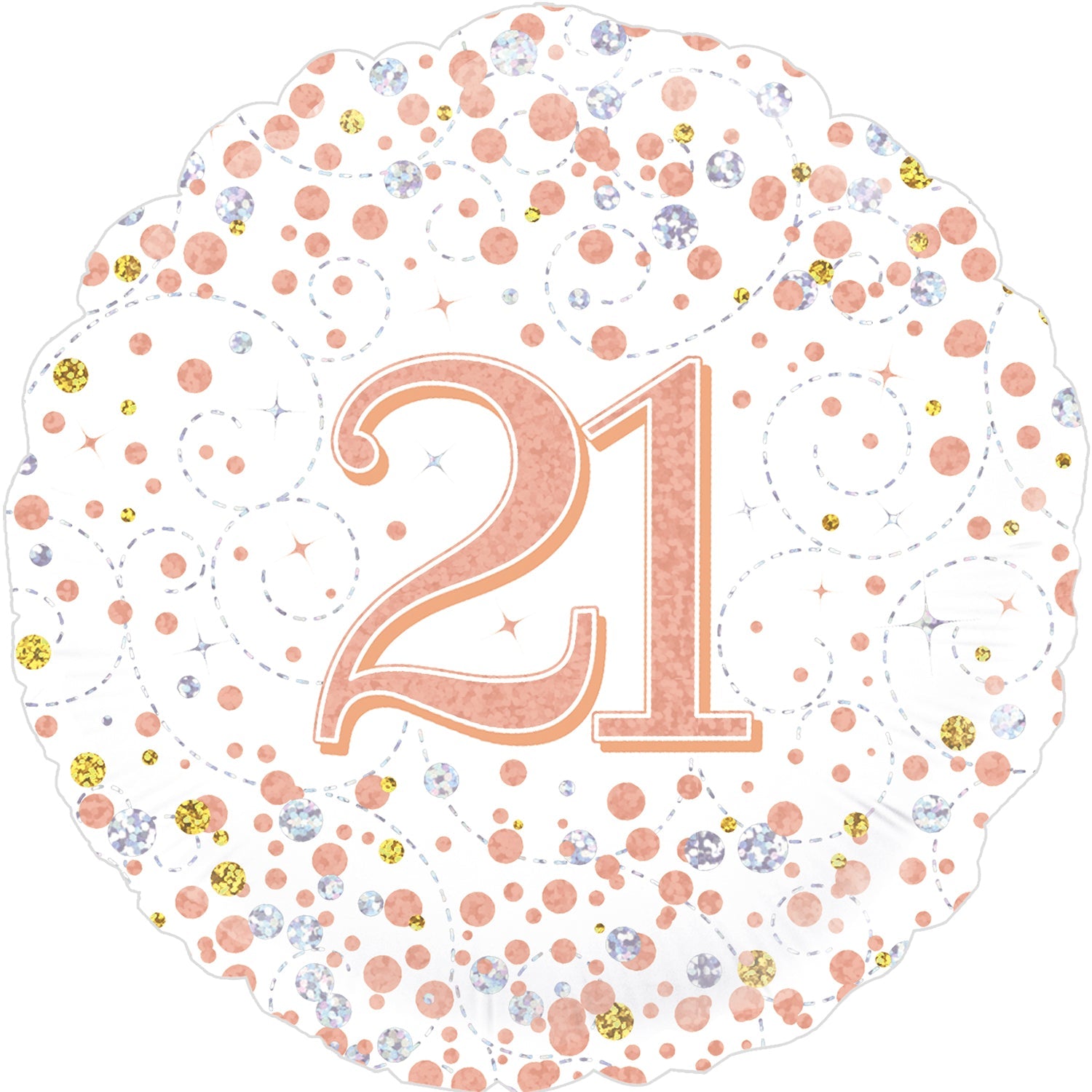 18" 21st Sparkling Fizz Birthday White & Rose Gold Holographic Oaktree Foil Balloon