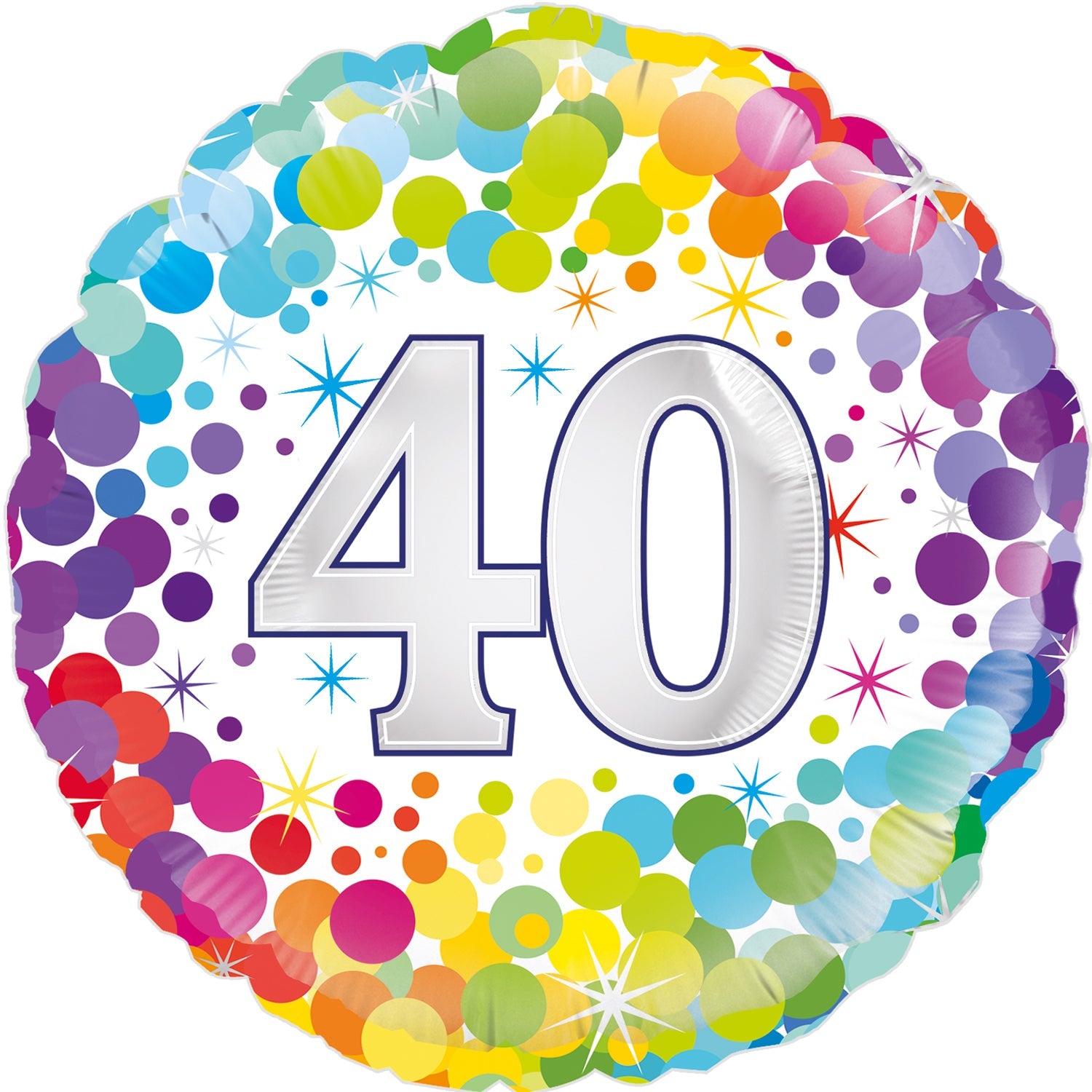 18" 40th Colourful Confetti Birthday Oaktree Foil Balloon