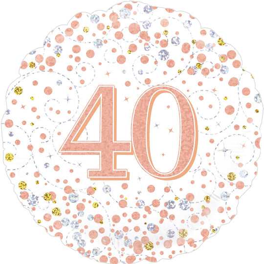 18" 40th Sparkling Fizz Birthday White & Rose Gold Holographic Oaktree Foil Balloon