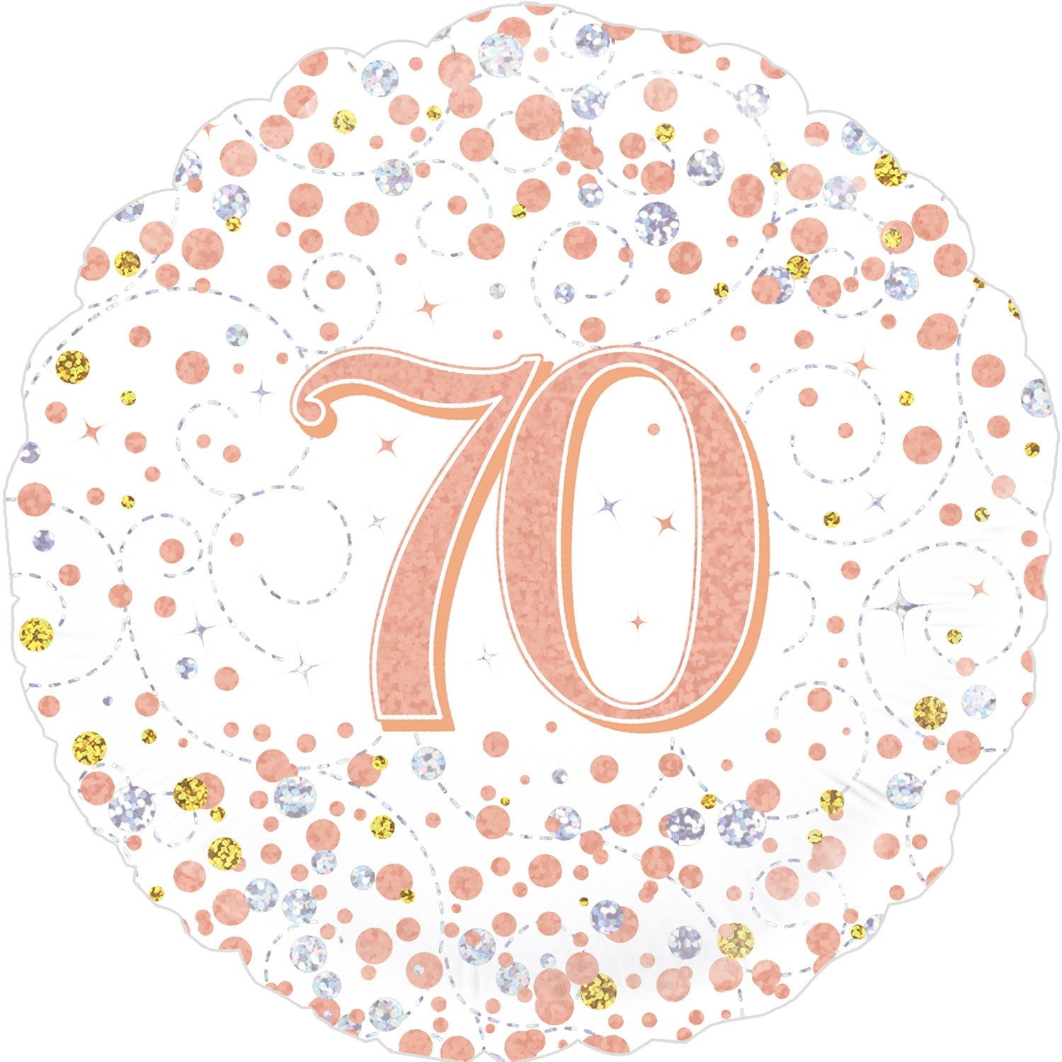 18" 70th Sparkling Fizz Birthday White & Rose Gold Holographic Oaktree Foil Balloon