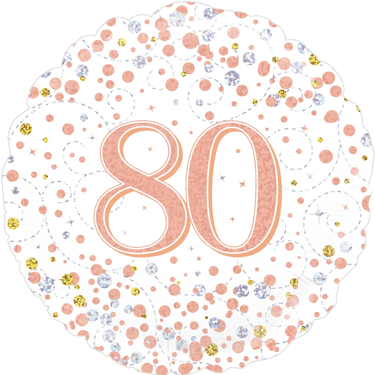 18" 80th Sparkling Fizz Birthday White & Rose Gold Holographic Oaktree Foil Balloon