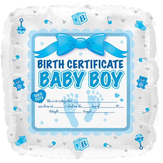 18" Baby Boy Birth Certificate Foil Balloon