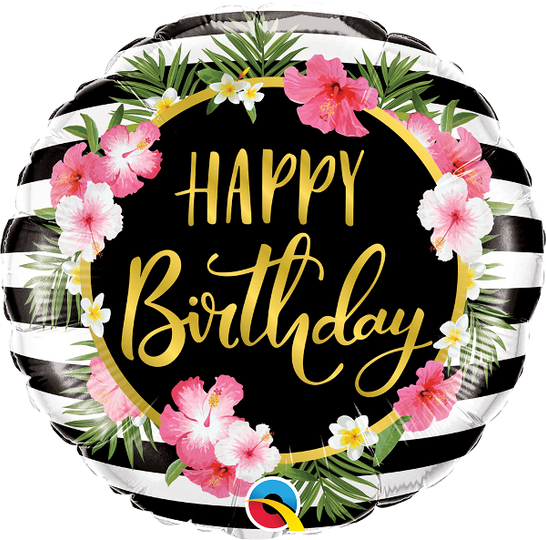 18" Birthday Hibiscus Stripes Foil Balloon