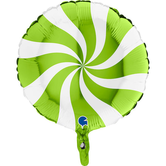 18" Candy Swirly White-Lime Green Foil Balloon
