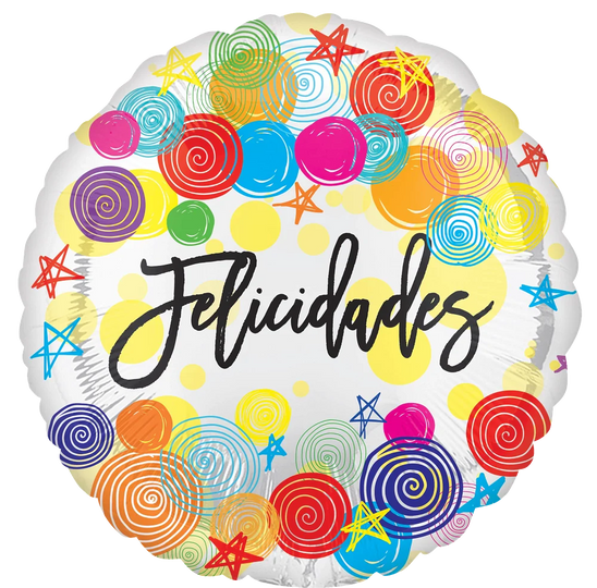 18" Felicidades Espirales (Spanish) Foil Balloon