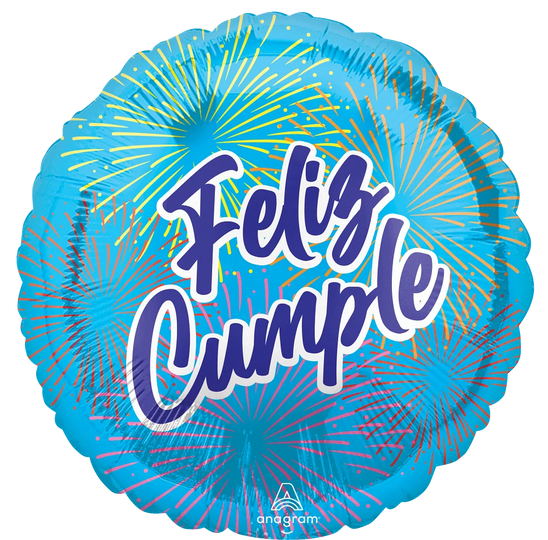 18" Feliz Cumpleaños Fuegos Artificiales (Spanish) Foil Balloon
