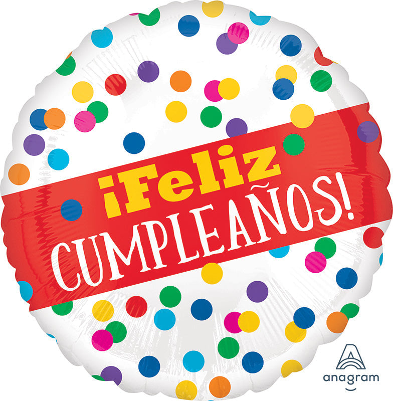 18" Feliz Cumpleaños Primary Dots Foil Balloon (Spanish)
