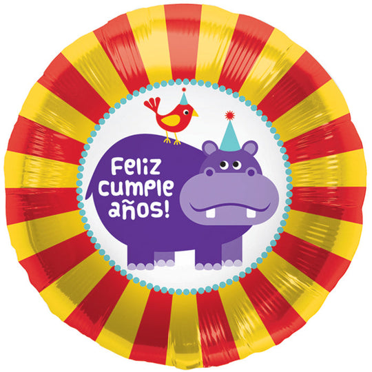 18" Foil Balloon Hippo Birdie Feliz Cumpleaños (Spanish)