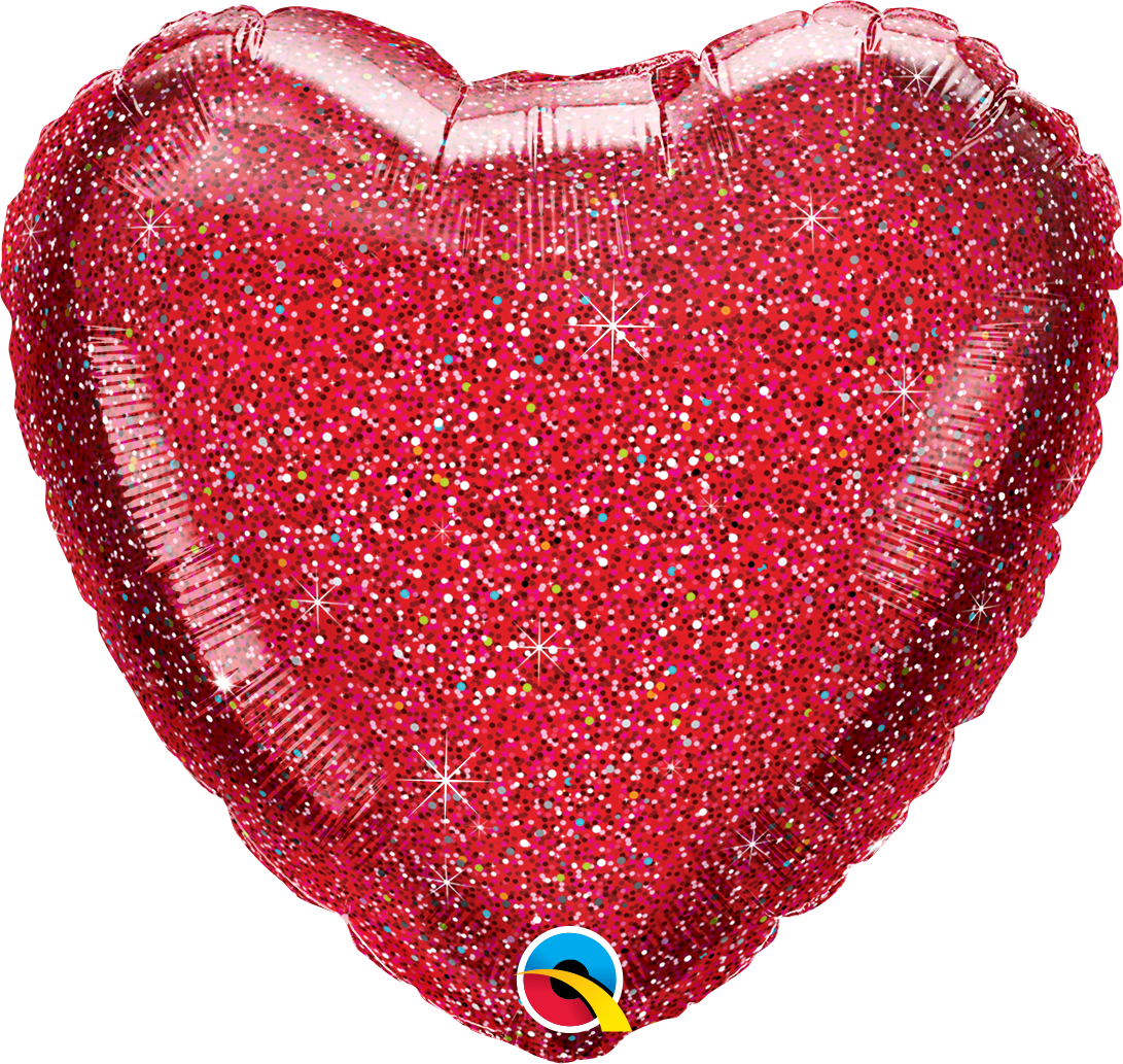 18" Glittergraphic Red Heart Foil Balloon