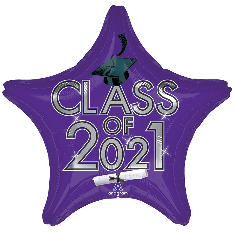 18" Graduation Class of 2021 - Purple Foil Balloon
