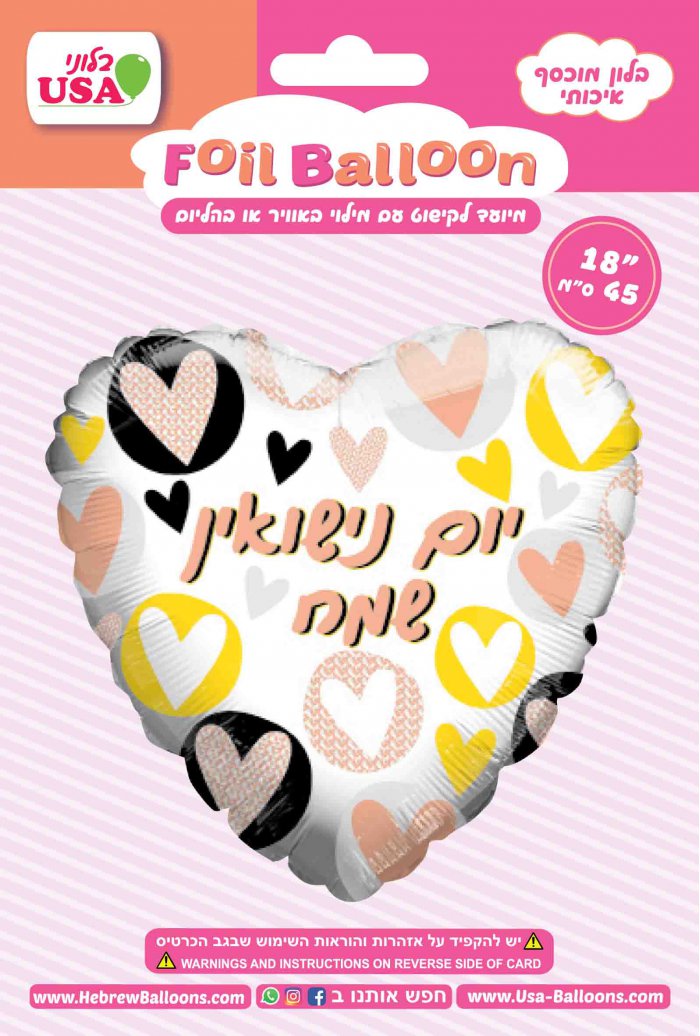 18" Happy Anniversary Hearts Foil Hebrew Balloon