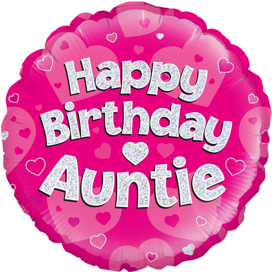 18" Happy Birthday Auntie Pink Holographic Oaktree Foil Balloon