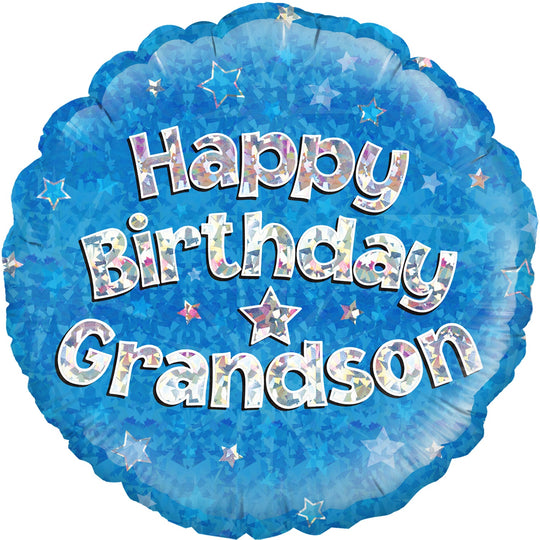 18" Happy Birthday Grandson Holographic Oaktree Foil Balloon