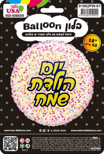 18" Happy Birthday Hebrew Glitter Gold/Pink White Foil Balloon