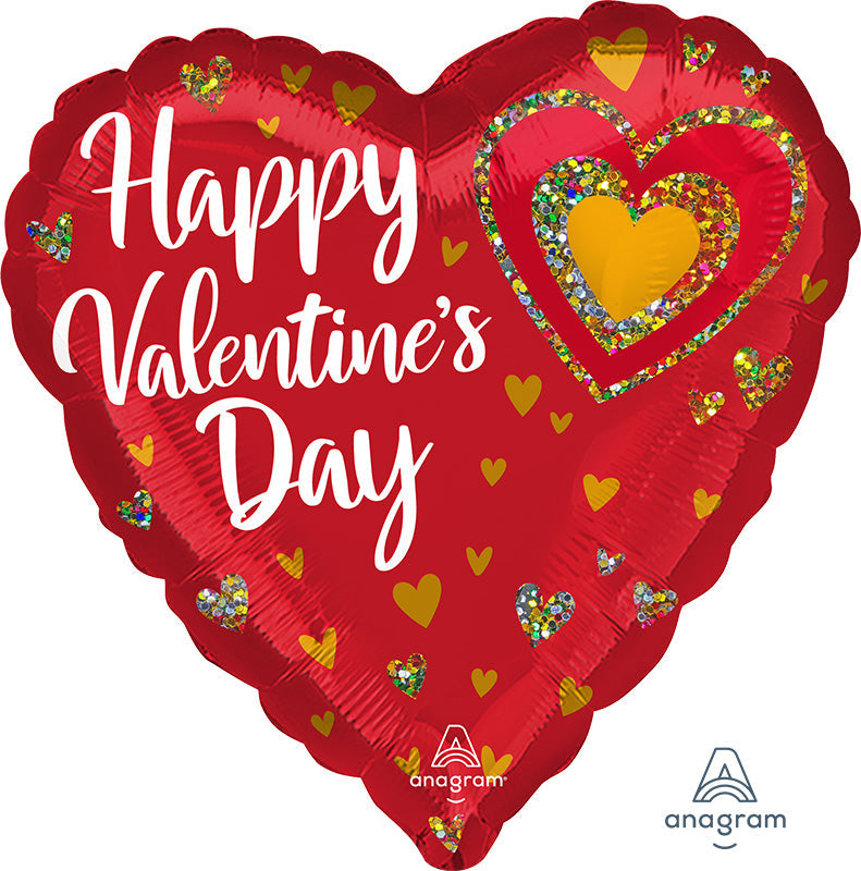 18" Happy Valentine's Day Glitter Hearts Foil Balloon