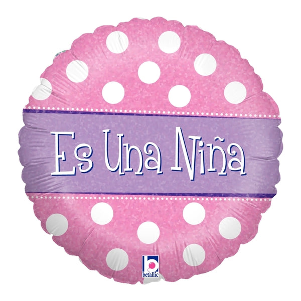 18" Holographic Balloon Es una Niña - Polka (Spanish)