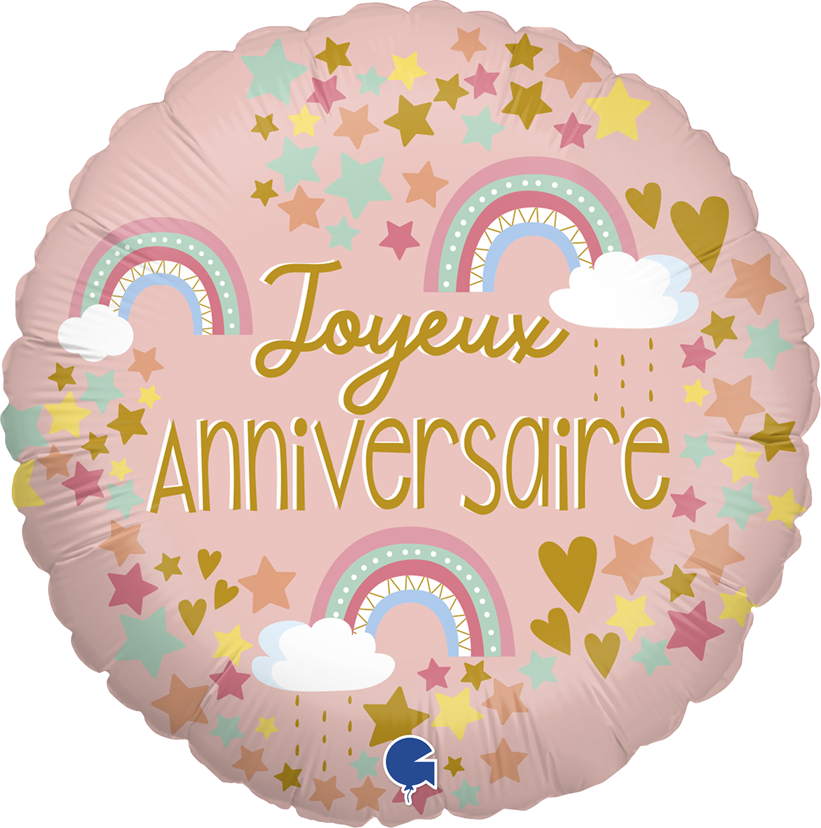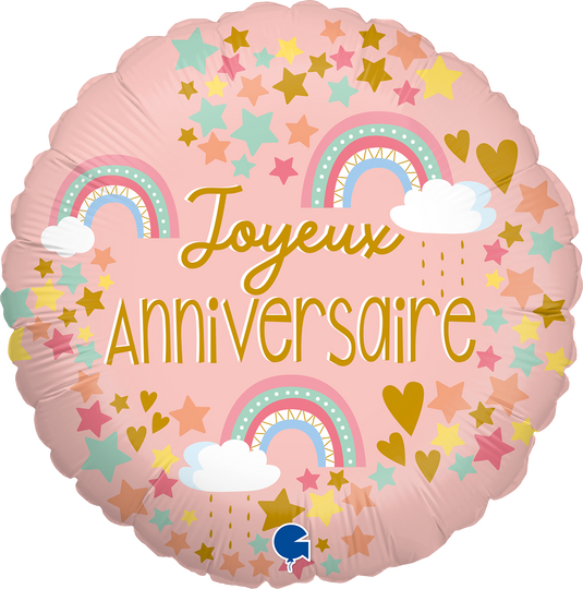 18" Joyeux Anniv Arc-en-ciel (French) Foil Balloon