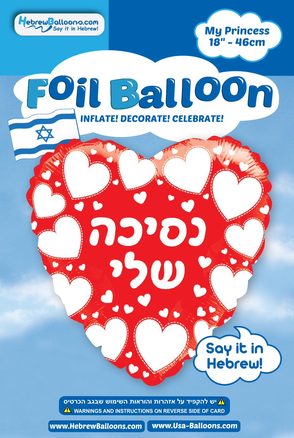 18" My Princess Red Heart White Print Hebrew Foil Balloon