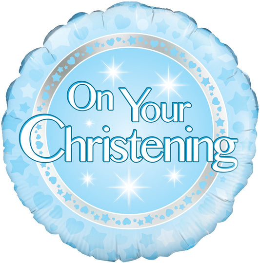 18" On your Christening Boy Holographic Oaktree Foil Balloon
