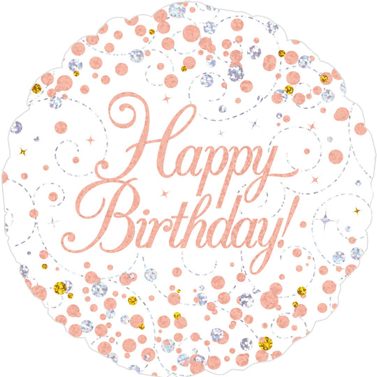 18" Sparkling Fizz Birthday White & Rose Gold Holographic Oaktree Foil Balloon