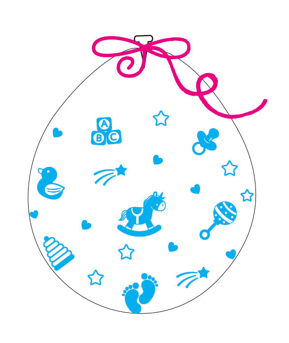 18" Latex Stuffing Balloons (25 Per Bag) Decomex Clear BABY TOYS with BABY BLUE INK