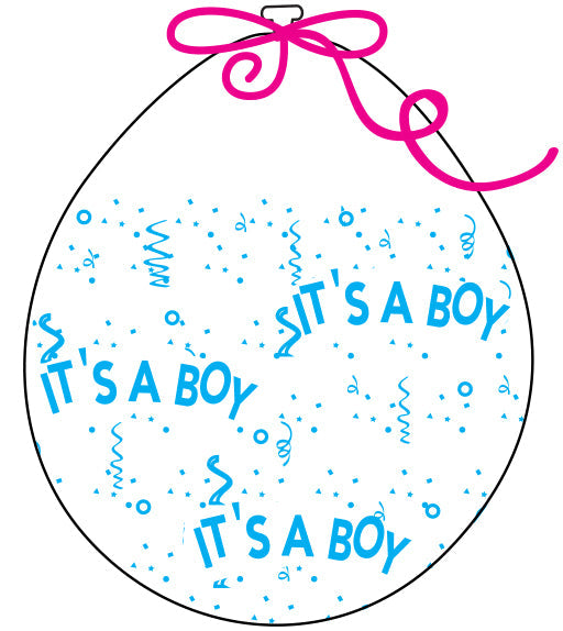 18" Latex Stuffing Balloons (25 Per Bag) Decomex Clear IT's A BOY with WHITE INK