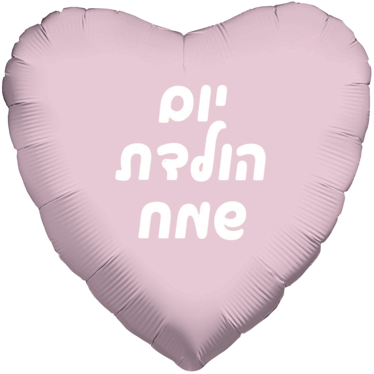 18" Happy Birthday Pastel Pink Heart Hebrew Foil Balloon