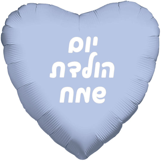 18" Happy Birthday Pastel Sky Blue Heart Hebrew Foil Balloon