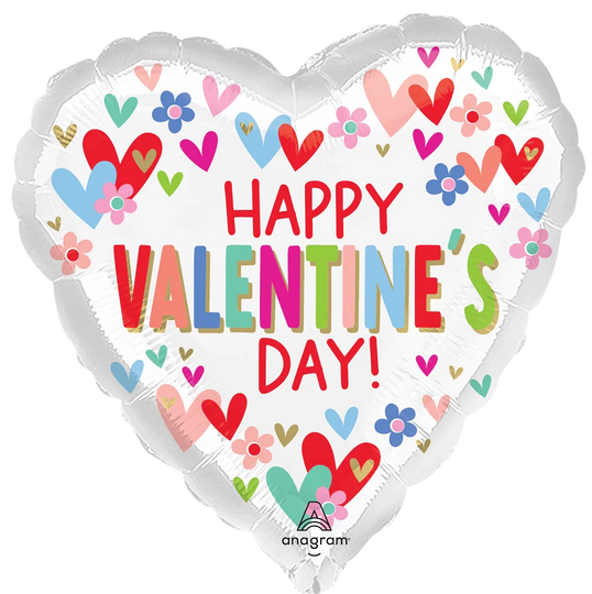 18" Happy Valentines Day Hearts & Daisies Foil Balloon