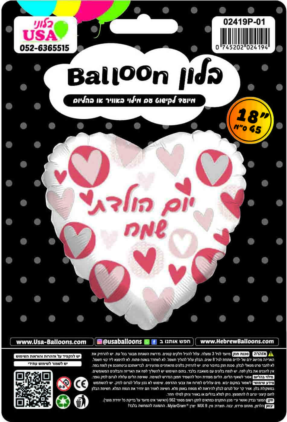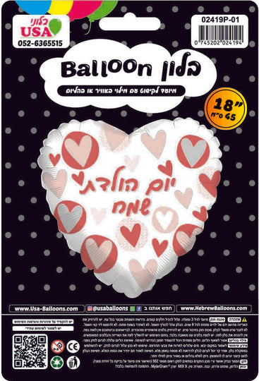 18" Mazel Tov Hearts Hebrew Foil Balloon