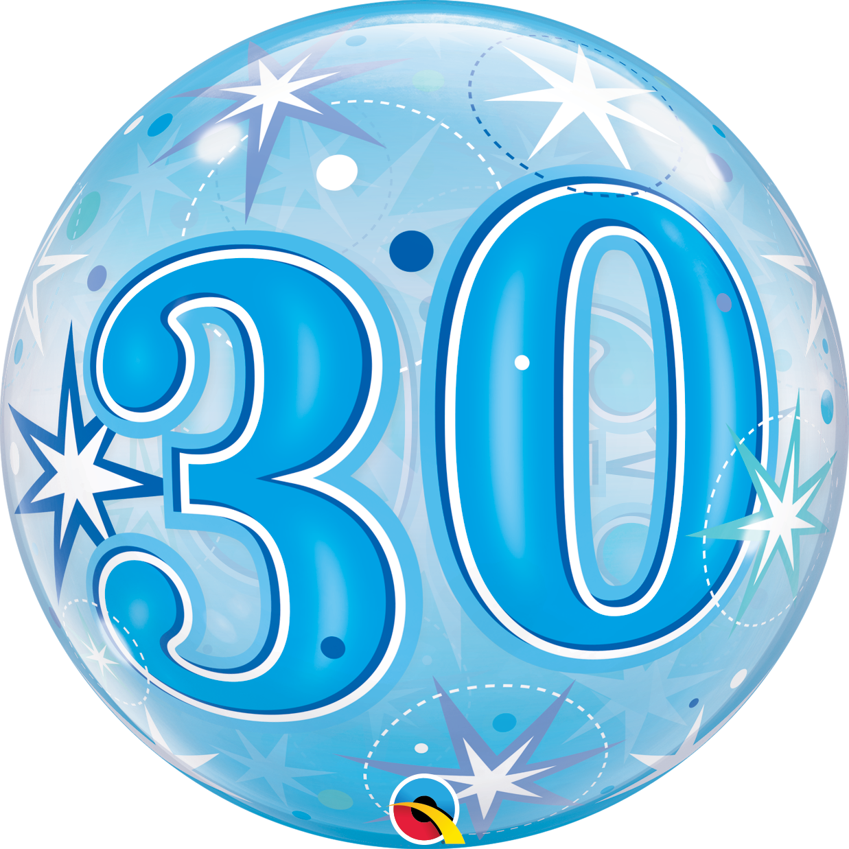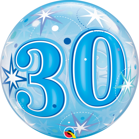 22" Single Bubble 30 Blue Starburst Sparkle Balloon
