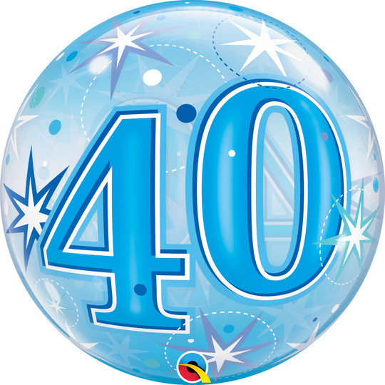 22" Single Bubble 40 Blue Starburst Sparkle Balloon