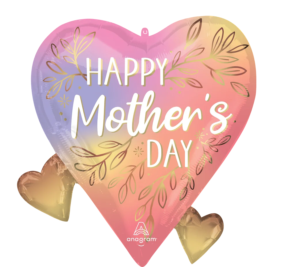 22" Jumbo Happy Mother's Day Botanical Traces Hearts Foil Balloon