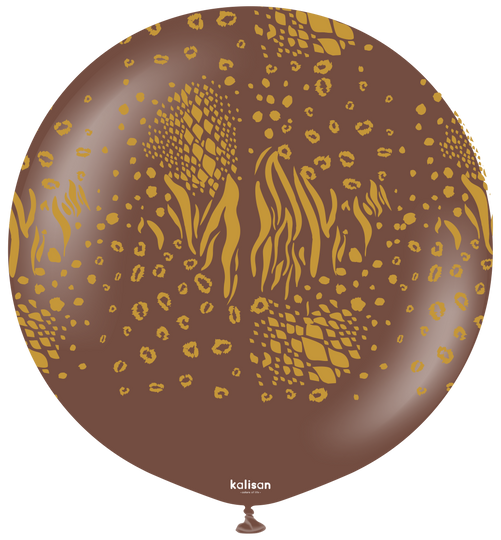 24" Kalisan Safari Mutant Chocolate Brown (Printed Gold-1 Per Bag) Latex Balloons