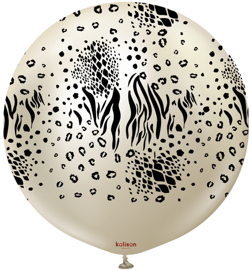 24" Kalisan Safari Mutant Mirror White Gold (Printed Black-1 Per Bag) Latex Balloons
