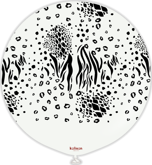 24" Kalisan Safari Mutant White (Printed Black-1 Per Bag) Latex Balloons