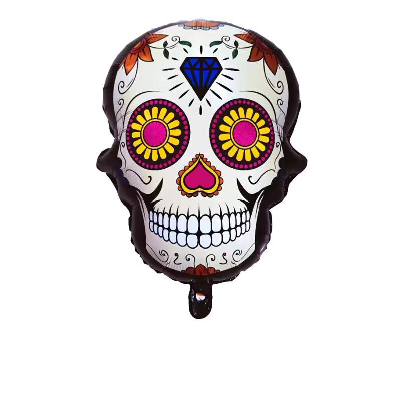 25" Sugar Skull Day Of The Dead (Dia De Los Muertos) Blue Diamond Foil Balloon