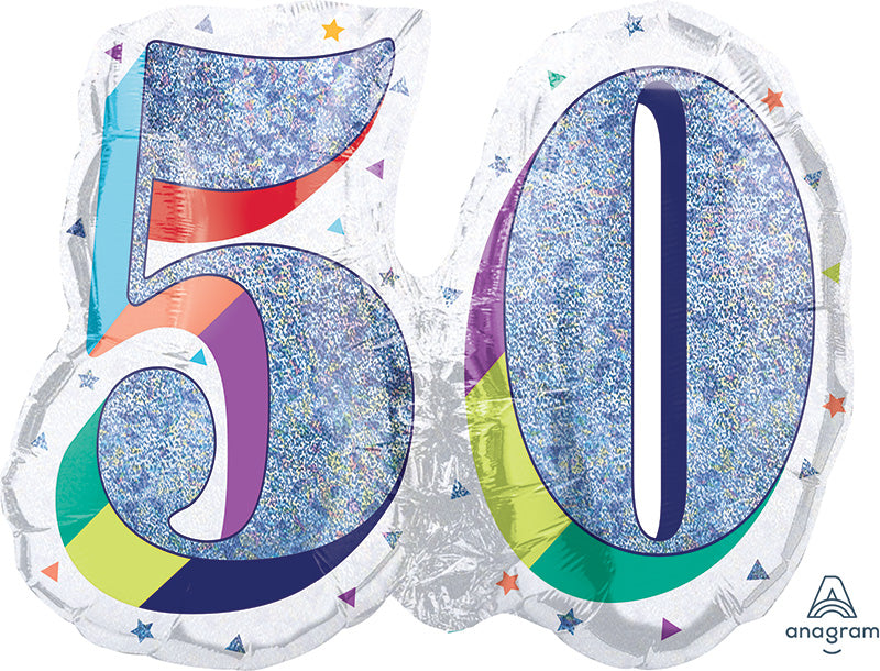 26" Holographic SuperShape Sparkles Number 50 Foil Balloon