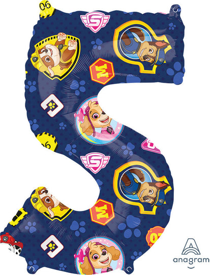 26" Paw Patrol Number 5 Mid Size Shape Foil Balloon