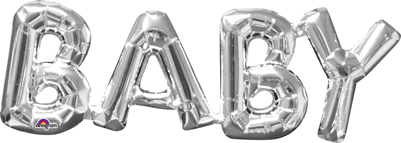 26" X 9" Jumbo Phrase "BABY" Silver Balloon Packaged