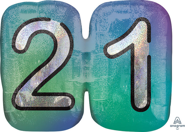 27" Finally 21 Holographic SuperShape Foil Balloon