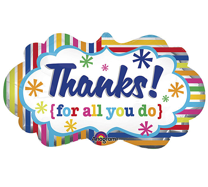 27" SuperShape Striped Thanks Marquee Balloon