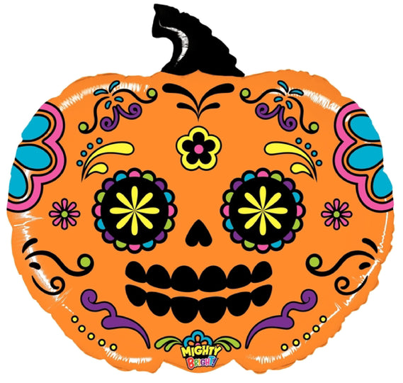 28" Bright Shape Mighty Pumpkin Sugar Skull Foil Balloon