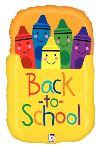 28" Foil Shape Back to School Crayon Box Foil Balloon